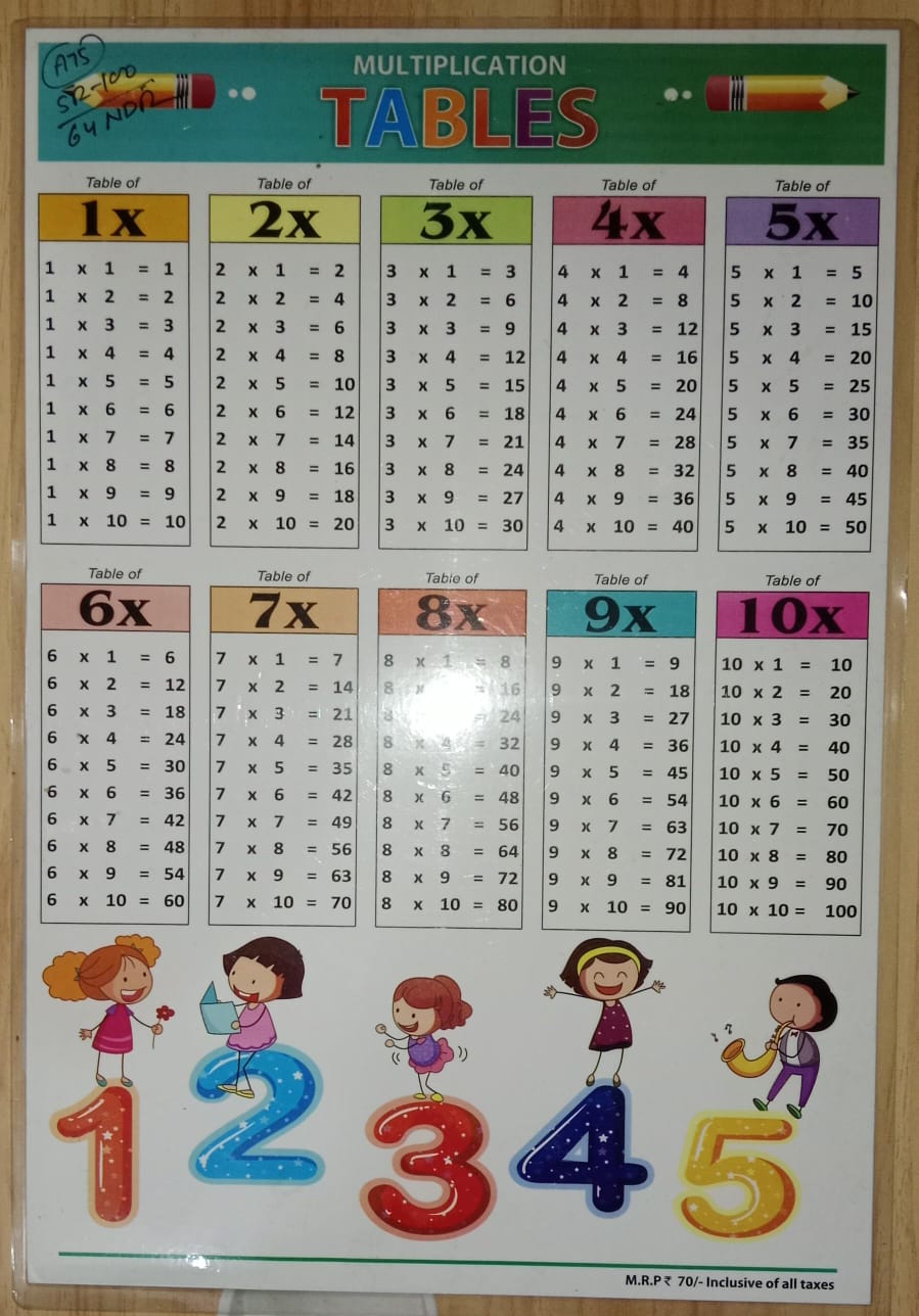 __LAMINATED CHART MEDIUM SIZE MULTIPLICATION TABELES RACK G2K4 MRP 65