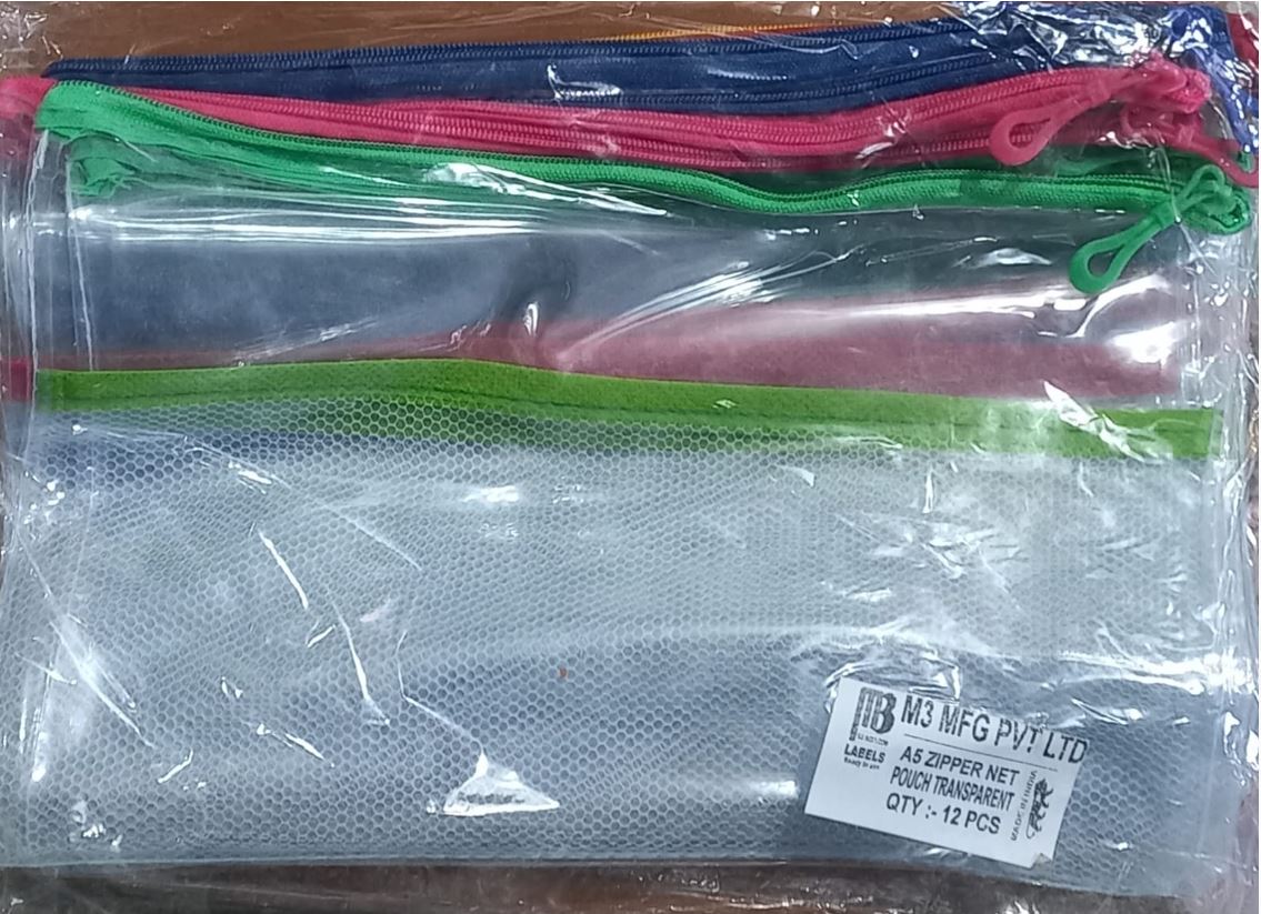 A5 ZIPPER BAG TRANSPARENT NET MRP RS 60 G3I4