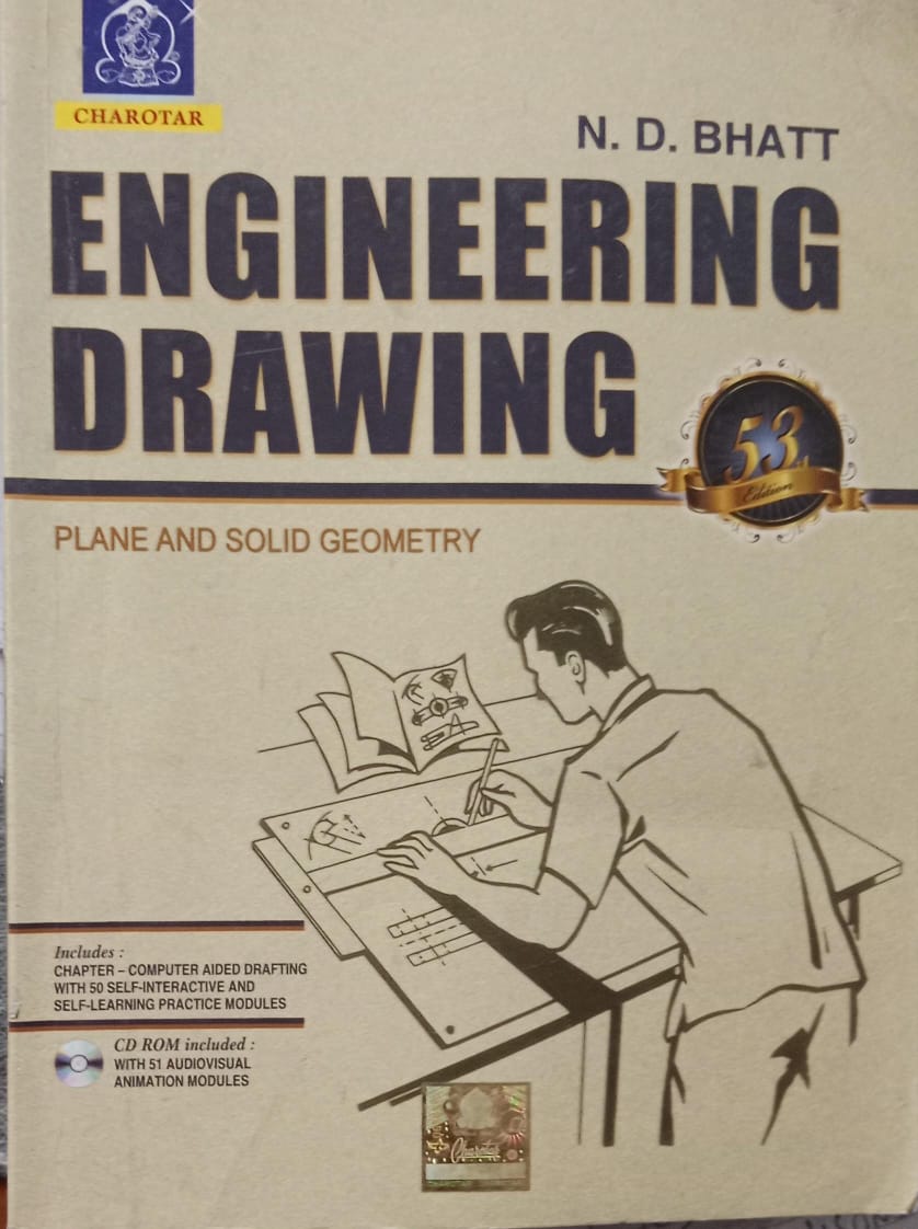 ENGINEERING DRAWING N.D.BHATT PLANE AND SOLID GEOMETRY 2ND HAND BOOK RACK A6 MRP 350