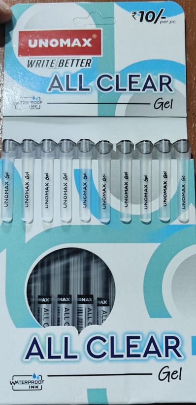 / UNOMAX ALL CLEAR GEL PEN BLACK MRP RS 10 (G2F2)